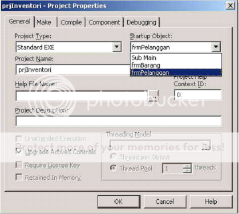 Pada combo Startup Object, pilih nama form yang akan pertama kali dijalankan, kemudian klik OK.